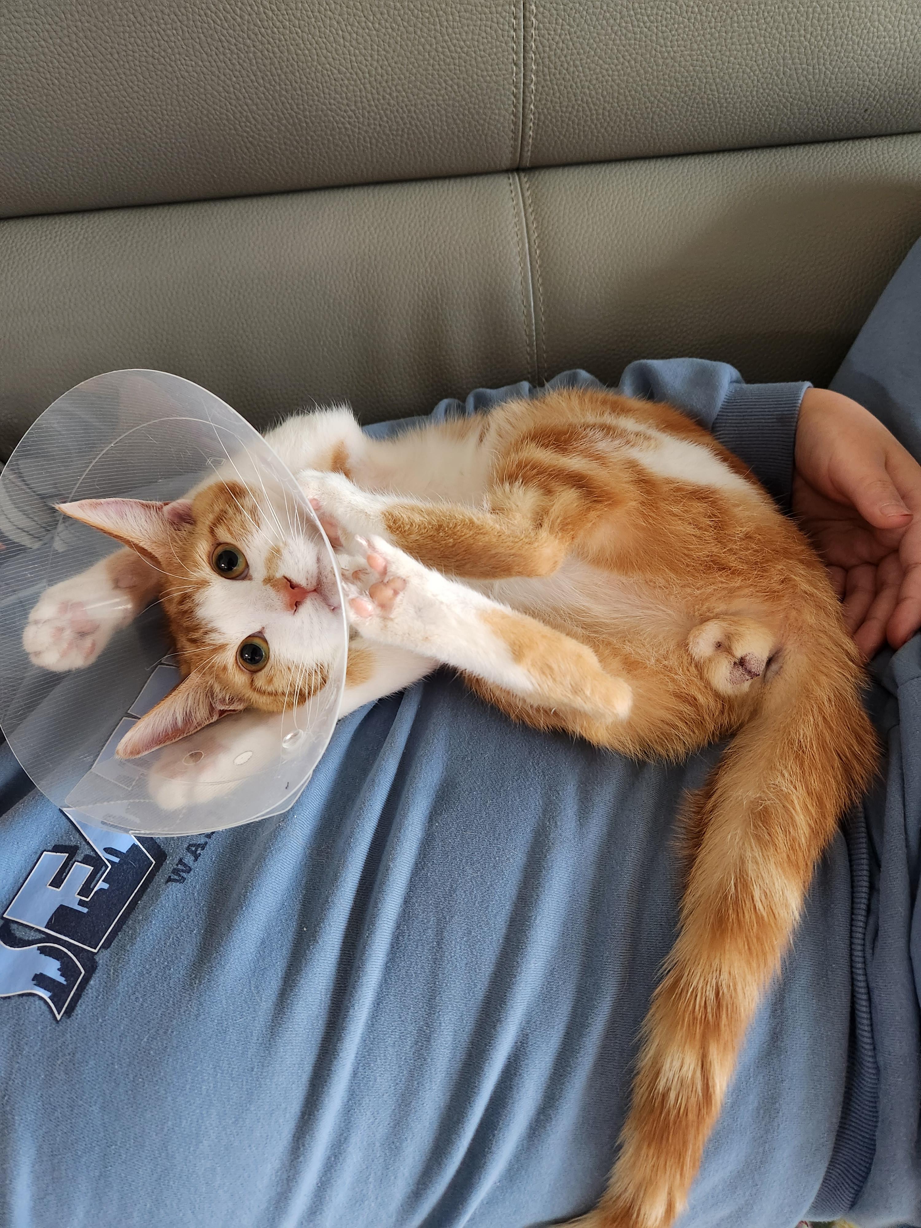 지난주 목요일에 수술을 했으니 이제 3일이 지났다. 불편한 넥카라 때문에 사료를 먹을 때도 물을 마실 때도 캣타워의 룸으로 들어가기 불편해하지만 일반인들도 골절로 깁스하면 불편하게 지낼 수 있으므로 냉정한 마음으로 일주일을 보내보기로 마음 먹었다.